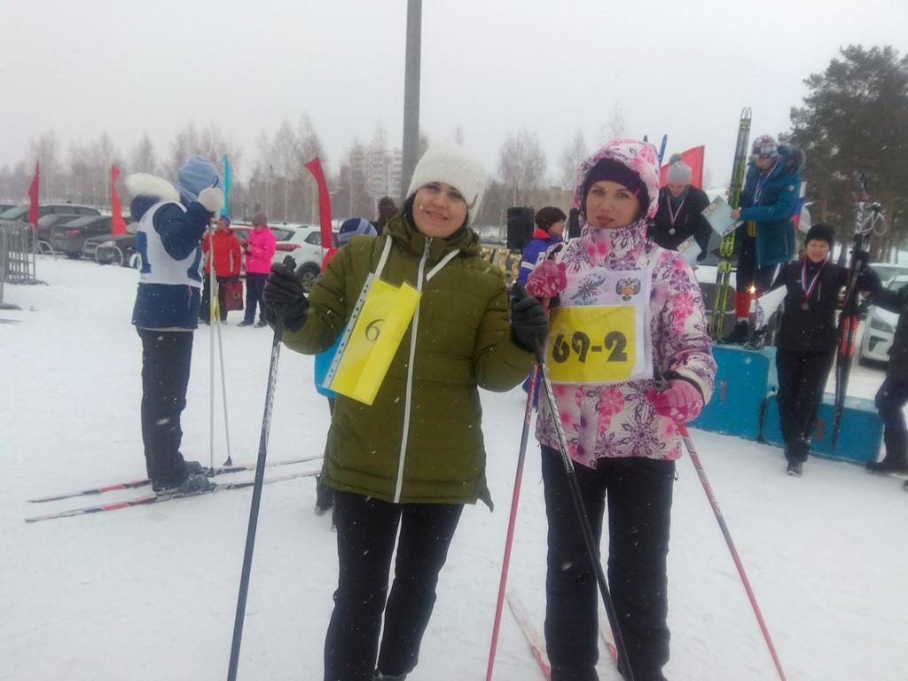 От нашей школы №69 выступила сборная команда в составе двух человек: бессменный лыжник и профессиональный спортсмен, учитель физической культуры Татаркин Михаил и заместитель директора по АХЧ Романова Татьяна.