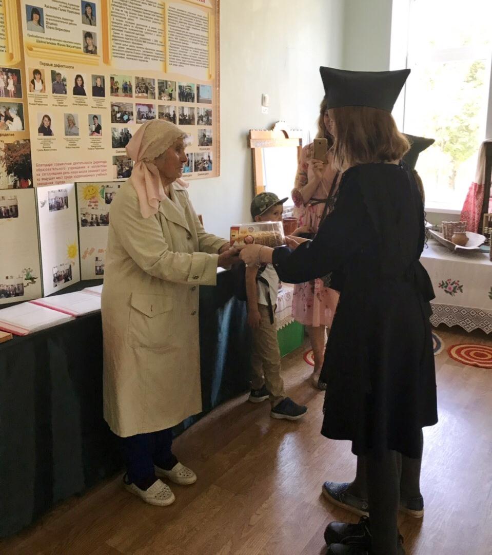 7 сентября наши тимуровцы с заведующей школьного музея провели экскурсию для ветерана труда Кулаковой А.А. «Сохраним нашу историческую родину». В школьном музее учащимся рассказали о подвигах наших земляков-фронтовиков, показали их награды. После посещения музея, в рамках данной акции тимуровцы подарили свои подарки Куликовой Александре Андреевне.
