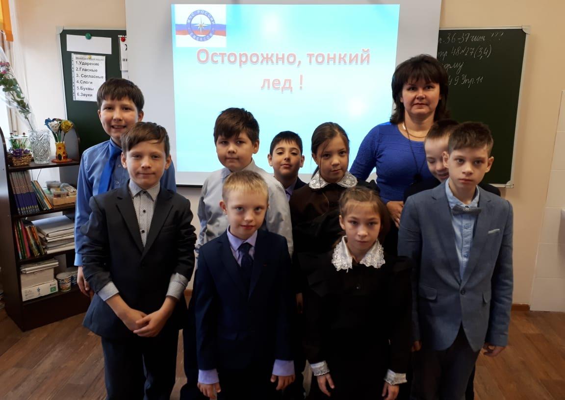 15 октября 2019 года учителями начальных классов был проведен единый классный час на тему «Осторожно! Тонкий лёд!». С учащимися провелась беседа об опасности, подстерегающей их на тонком льду. Так же был показан фильм и проведен конкурс рисунков на эту тему.