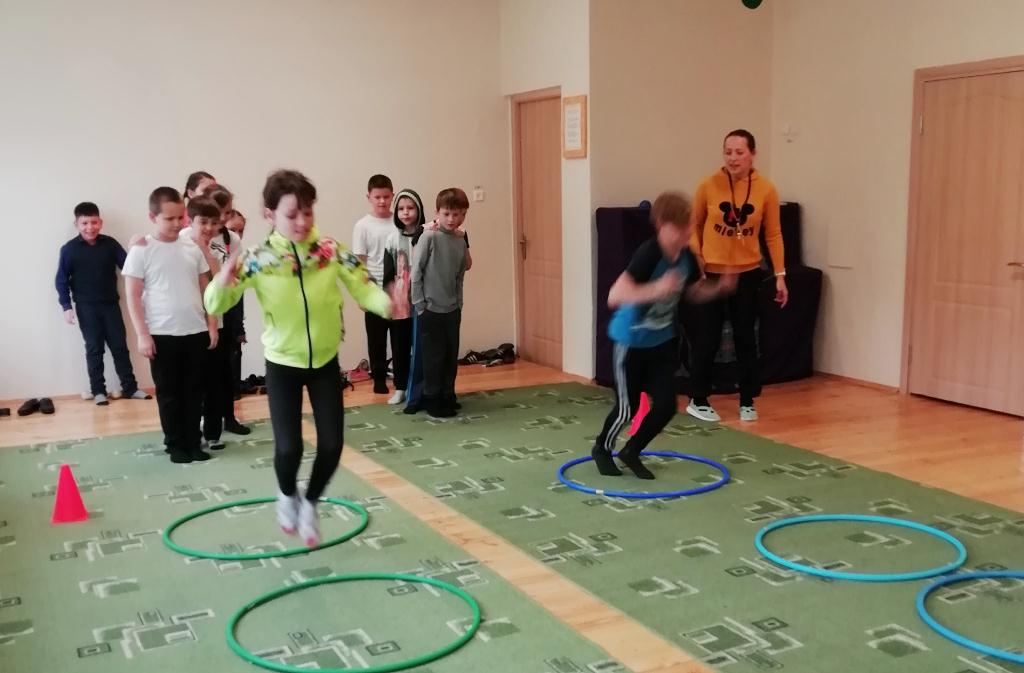 Опубликовано: 06.11.2019Согласно плану воспитательной работы с учащимися на осенние каникулы, 6 ноября 2019г. учителя начальных классов совместно с учителем ритмики Уткиной Е. Ю. провели с младшими школьниками спортивный праздник "Весёлые старты". Ребята приобщились к здоровому образу жизни, участвовали в различных конкурсах и эстафетах.