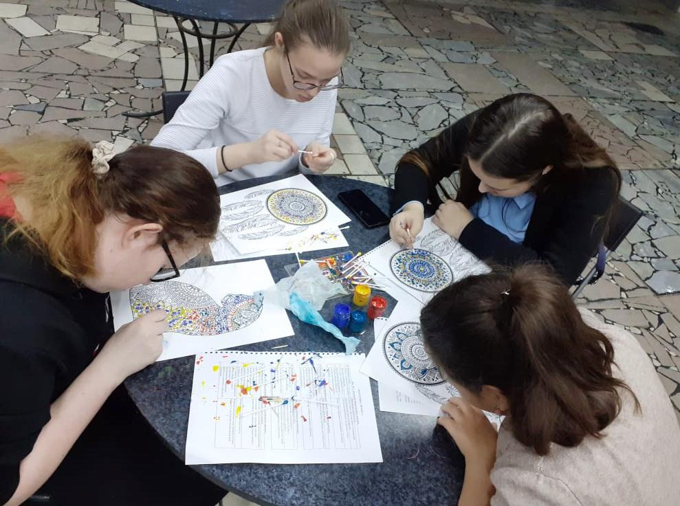 Опубликовано: 06.11.201906.11.2019г. учащиеся 8Б класса под руководством кл.руководителя Хамидуллиной Л.Р. посетили МЦ "Нур" мастер-класс "Точечный рисунок".