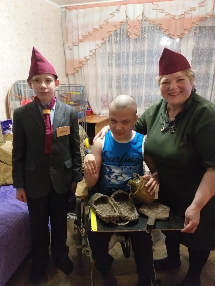 Опубликовано: 06.12.2019ГБОУ "Набережночелнинская школа №69 для детей с ОВЗ" тимуровский отряд "Дружба" организовали экскурсию "Музей на дому" для Вадима учащегося 6 класса с использованием экспонатов школьного музея "Наследие". Тимуровцы приготовили для Вадима подарки и сладости.