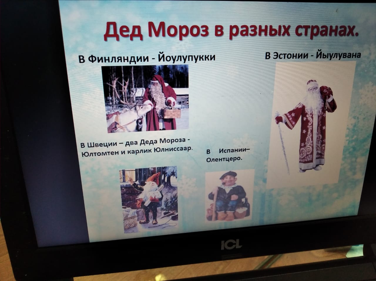 Опубликовано: 05.01.20205 января 2020 года педагогами Нигметзяновой Г.Р., Юнусовой З.Е. для учащихся 2-ых классов была показана презентация "Деды Морозы разных стран". Затем ребята смастерили "снеговика". Все остались довольны.