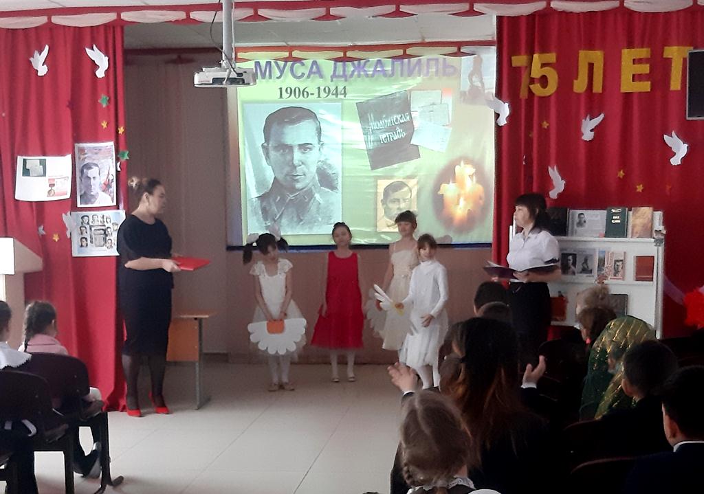 Опубликовано: 19.02.2020В честь дня рождения поэта, 19.02.2020 библиотекарем школы Сабирзяновой Р.И. и воспитателем Хасановой А.Х. для учеников начальных классов было организовано мероприятие "Жизнь моя песней звенела в народе..." Татарский поэт Муса Джалиль - символ несгибаемого мужества и преданности Родине.