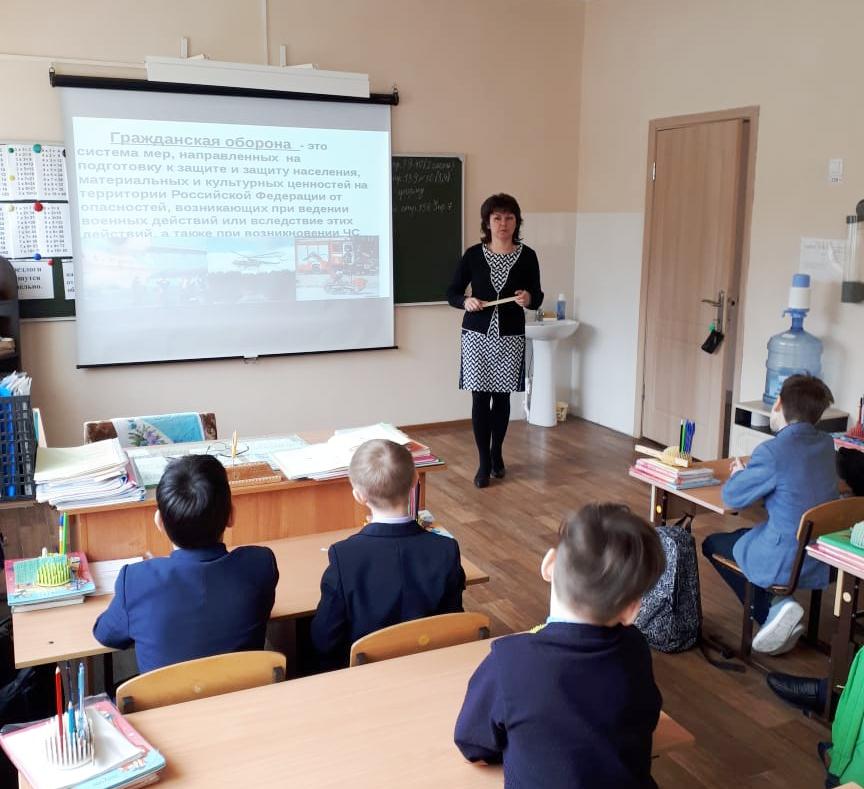 3 марта 2020 года классными руководителями начальных классов был проведен единый классный час, посвященный Всемирному дню Гражданской обороны. Ученикам была показана презентация, проведена беседа о правилах поведения в чрезвычайных ситуациях. Учителя напомнили детям телефоны экстренных служб.