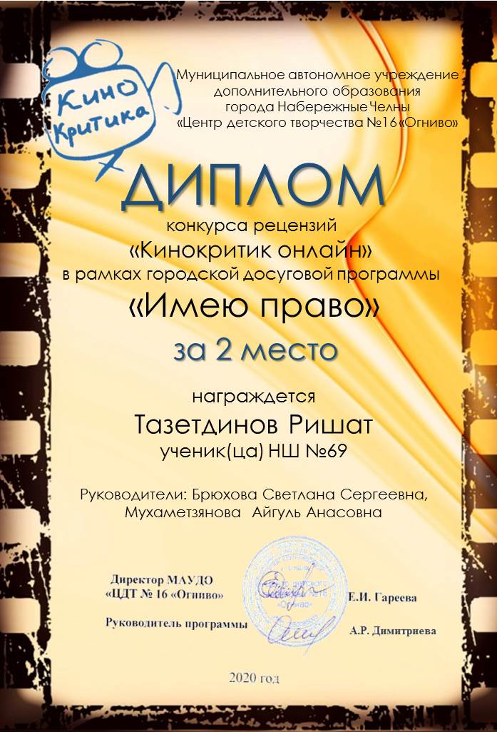 Опубликовано: 05.05.2020Поздравляем Тазетдинова Ришата, ученика 5А класса с призовым местом в городской программе "Имею право", педагоги Мухаметзянова А.А., Брюхова С.С. Молодец! Желаем дальнейших успехов!