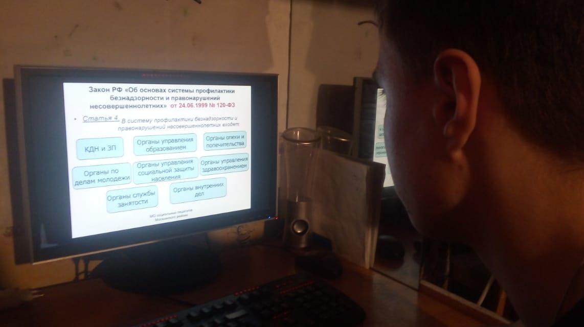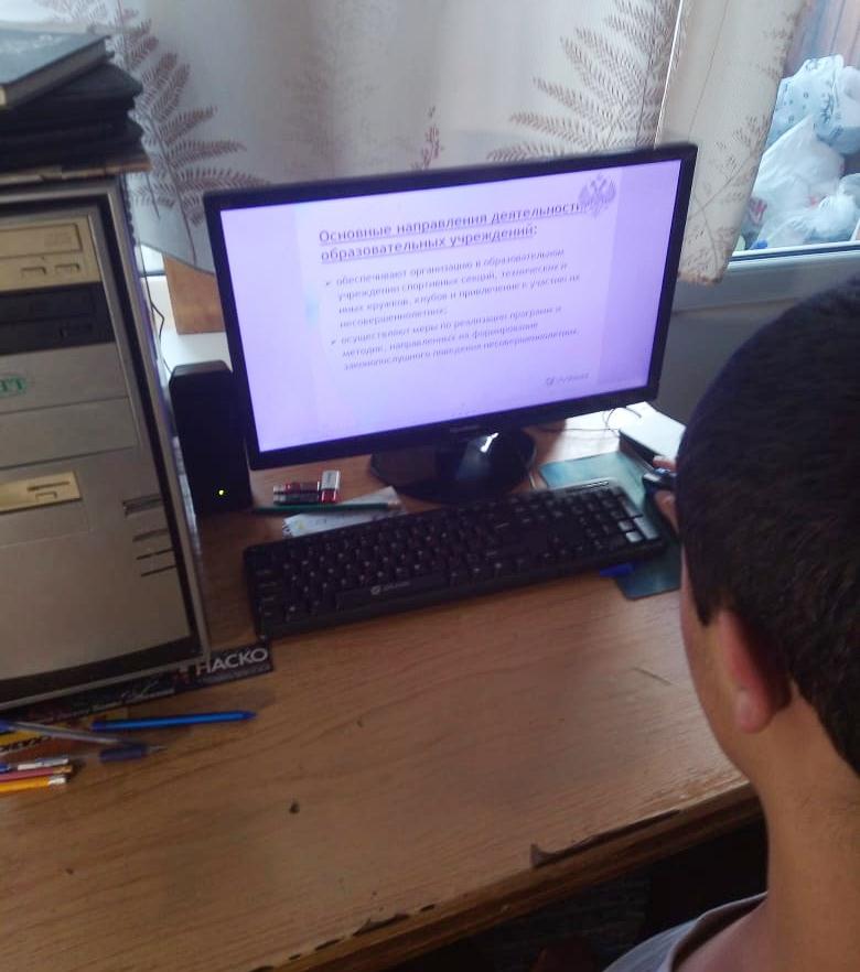 В преддверии летних каникул 18.05.2020г. в 9б классе педагогом Акбировой Г.Т. дистанционно был организован классный час о Федеральном Законе №120 "Об основах системы профилактики безнадзорности и правонарушений несовершеннолетних". Ребята ознакомились с информацией о причинах принятия Закона, с основными понятиями, задачами и принципами деятельности органов и служб, направлениями деятельности образовательных учреждений, с системой профилактики безнадзорности и правонарушений несовершеннолетних, индивидуальной профилактической работой, изучили статьи Федерального Закона №120, а также просмотрели презентацию.