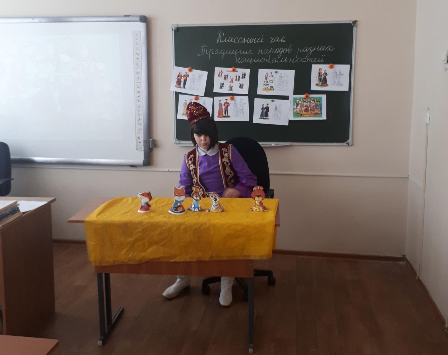 2021 нче елның 16 нчы мартында Татарстан Республикасындагы Туган телләр һәм халыкара бердәмлеге елына багышланган тәрбия чаралары планы уңаеннан рус класс җитәкчеләре Брюхова С.С. һәм Галялтдинова Г.Ф. 6б, 6в сыйныф укучылары өчен “Төрле милләт халыкларының гореф-гадәтләре” темасына сыйныф сәгате үткәрделәр. Укучылар башкорт халык әкиятен тыңладылар, кызыклы сорауларга җавап бирделәр, мөстәкыйль эш эшләделәр.