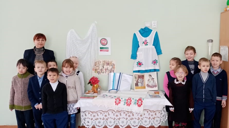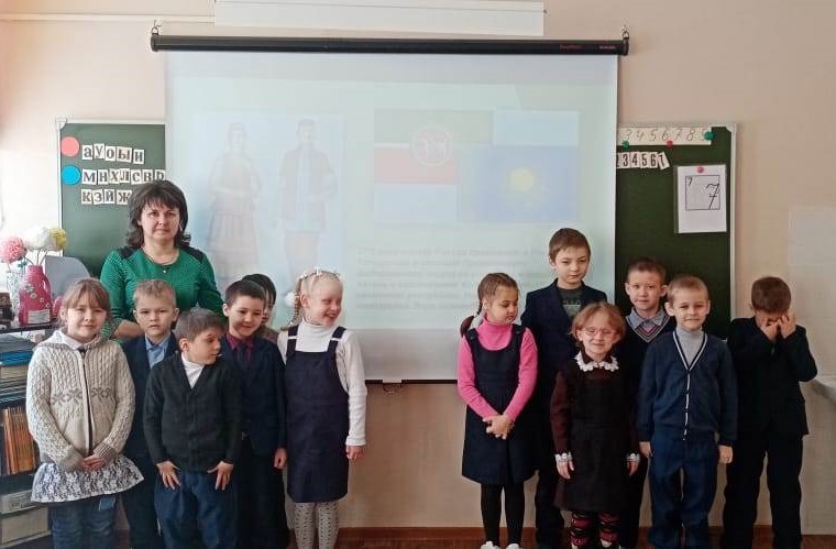 Учащимся была продемонстрирована презентация по данной тематике, в ходе которой дети познакомились с основными праздниками, бытом, культурой, традициями и обычаями татарского и русского народа. Первоклассники получили элементарные представления об устройстве дома, истории народного костюма, о народном промысле, о русском и татарском фольклоре. В ходе классного часа дети посмотрели видеоролик «Интересные обычаи разных народов». Совместно с родителями была организована выставка предметов татарского быта.