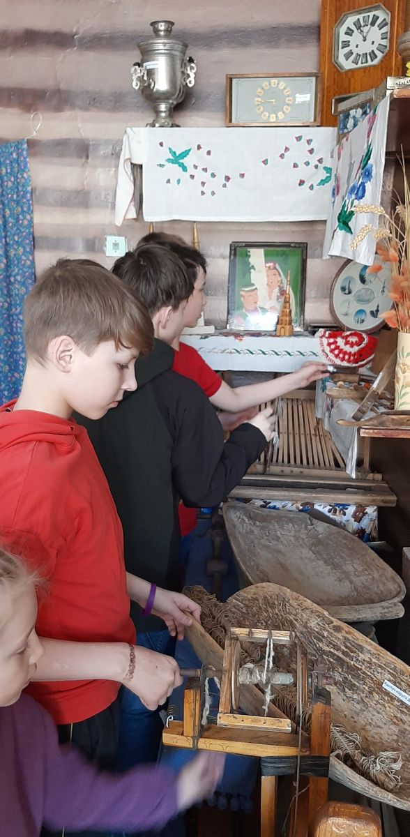 Опубликовано: 22.03.202122.03.2021 г. ученики 5а, 5б, и 6б классов посетили музей «Татарская изба» в СОШ №4. Ребята поближе познакомились с экспозициями татарской избы, предметами быта, которые исчезли из нашего обихода. Получили огромное удовольствие от соприкосновения с прошлым.