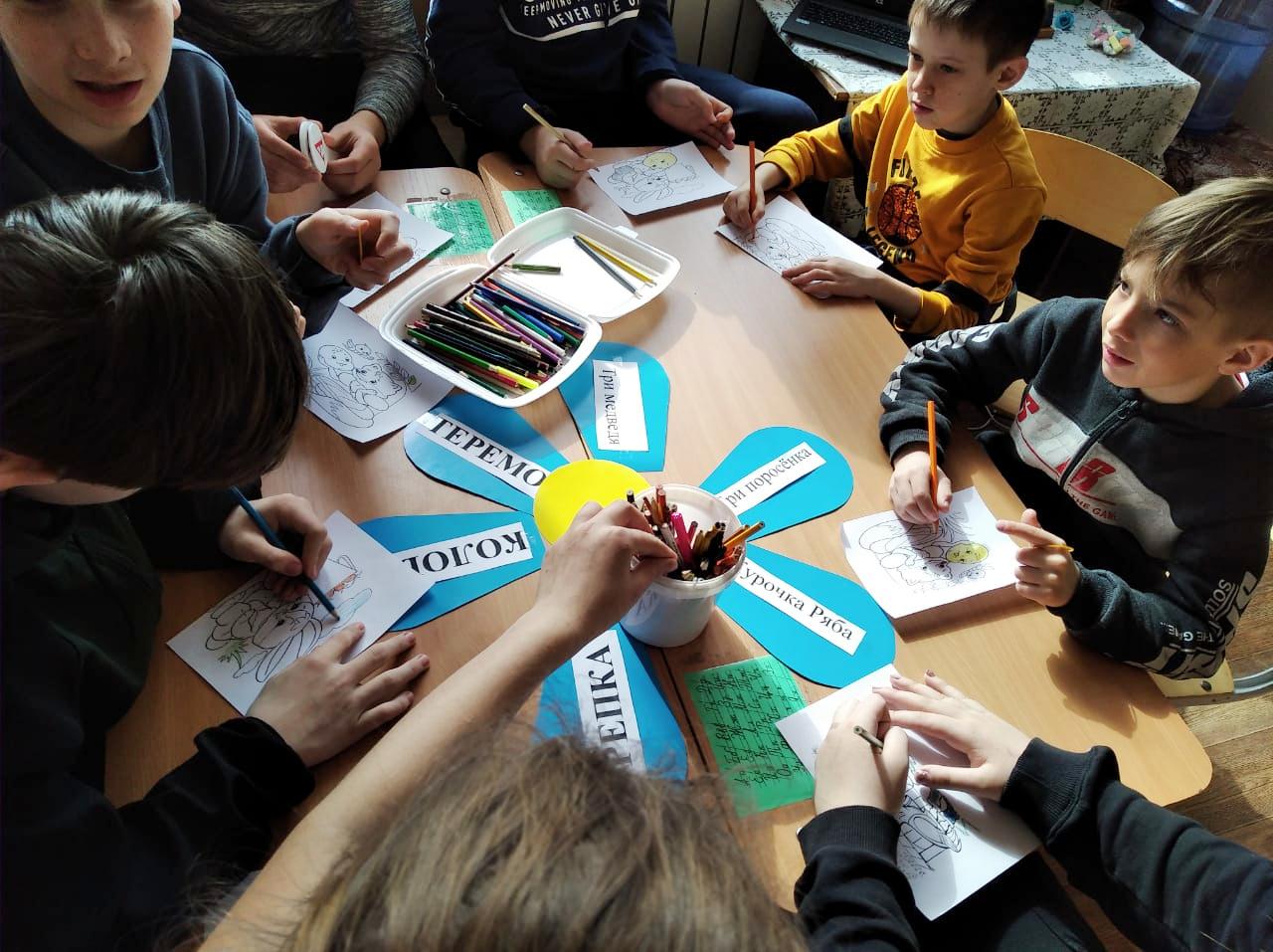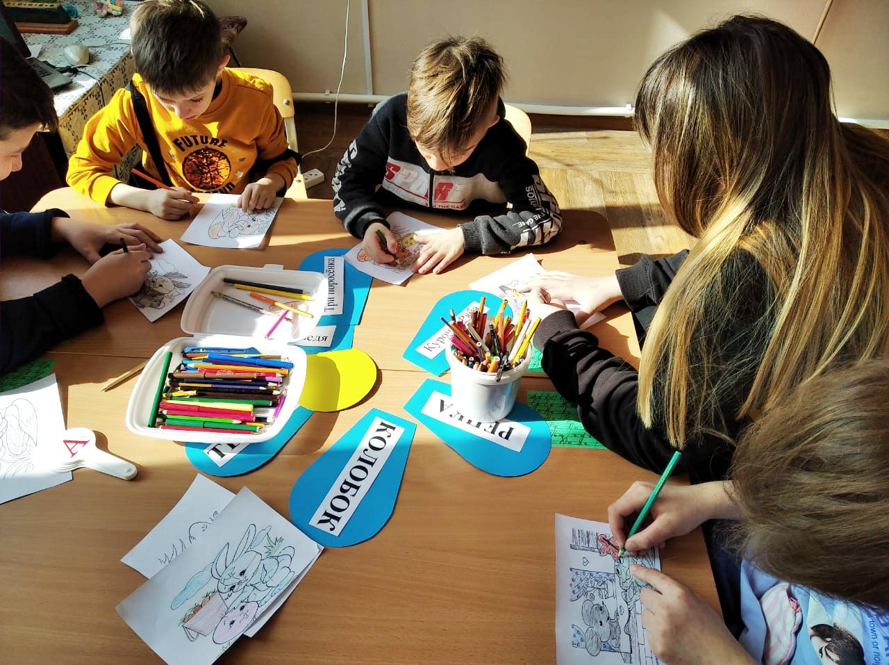 Ребята вспоминали и рассказывали народные сказки по названиям. Затем отгадывали по рисункам персонажи и раскрашивали их. В конце дети смотрели русскую народную видео сказку «Курочка Ряба».