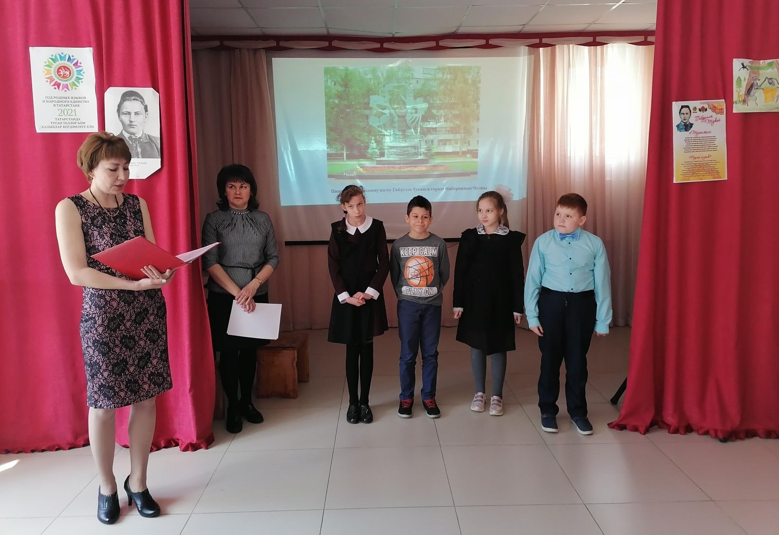Әлеге истәлекле датага багышлап, шулай ук 2021 нче ел республикабызда Туган телләр һәм халыклар бердәмлеге елы булуын исәпкә алып 26 нчы апрель көнне педагоглар Валиева Р.Р., Нигметзянова Г.Р. тарафыннан “Габдулла Тукай – татар халкының бөек шагыйре” дип исемләнгән ачык чара үткәрелде.