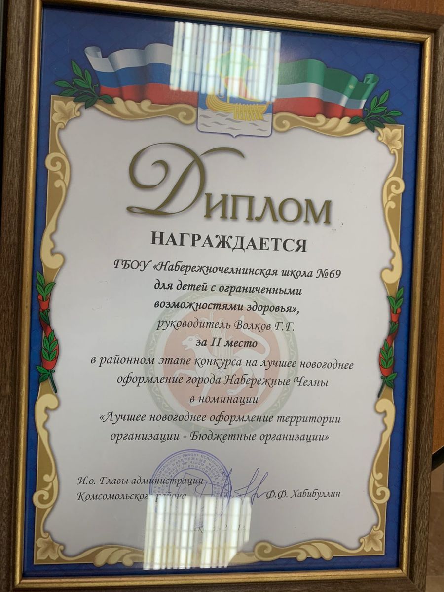 Опубликовано: 28.12.2021Школа №69 заняла 1 место в городском конкурсе новогоднего оформления фасадов ОУ г. Набережные Челны, а также 2 место в районном этапе конкурса на лучшее новогоднее оформление в номинации "Лучшее новогоднее оформление территории организации - Бюджетные организации".