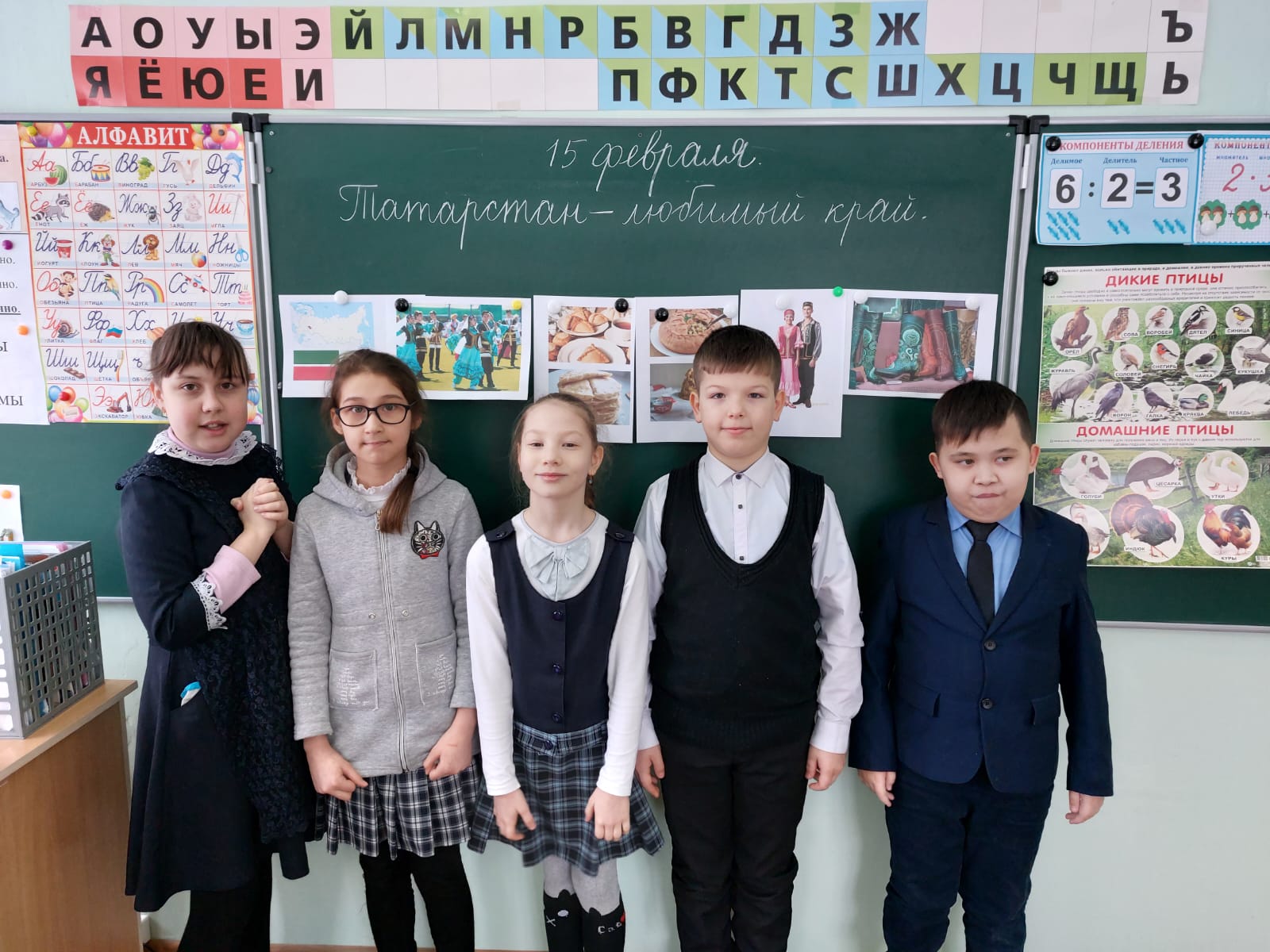 2022 нче елның 11 нче февралендә 3 – 4 нче сыйныф укучылары өчен башлангыч сыйныф укытучылары җитәкчелегендә Халыкара туган тел көненә багышланган “Татарстан – туган ягым. Татарстан халыкларының традицияләре, гореф – гадәтләре, йола - бәйрәмнәре” дигән темага сыйныф сәгате үткәрелде. Укучылар Татарстан Республикасында яшәүче халыкларның традицияләре, гореф – гадәтләре, йола – бәйрәмнәре белән таныштылар. Дәүләт гимнын тыңладылар, флаг, герб турында белемнәрен ныгыттылар. Туган як табигатенә, байлыкларына, татар халкының милли киемнәренә багышланган презентация карадылар һәм милли татар киемнәре кигән егет белән кыз рәсемен матур итеп бизәкләделәр. Сыйныф сәгатьләре бай эчтәлекле итеп үткәрелде.