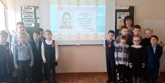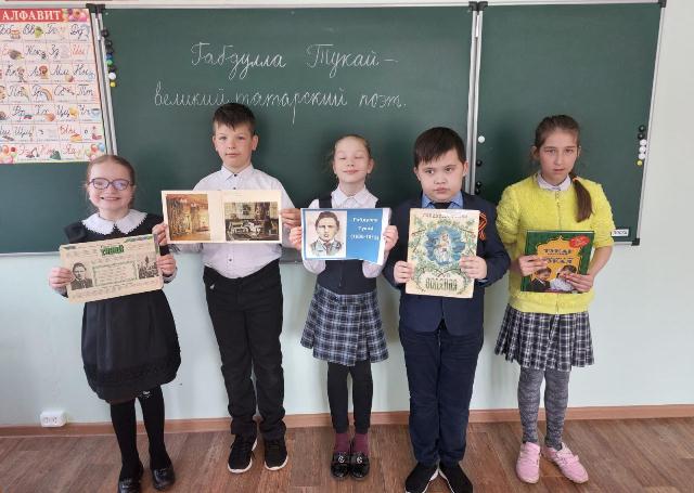 Опубликовано: 28.04.2022Согласно плану мероприятий 26.04.2022г. в начальных классах учителями были проведены классные часы, посвящённые великому татарскому поэту Габдулле Тукаю. Учащиеся узнали интересные факты из жизни и творчества поэта, о его трудном детстве и любви к родному языку и родному краю.