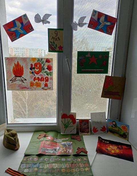 Опубликовано: 06.05.2022Учащиеся 7в под руководством Брюховой С.С. приняли участие в смотре-конкурсе, посвящённом 9 мая; сходили в кинотеатр на фильм «Крылья»; участвовали в акции «Георгиевская ленточка». Также учащиеся домашнего обучения дома сделали выставку, посвящённую Дню Победы.