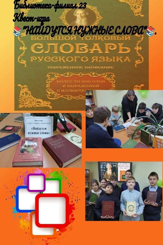 22.11.22 ученики 7а класса посетили библиотеку №23, где для них была проведена Квест-игра ко Дню словарей и энциклопедий "Найдутся нужные слова".