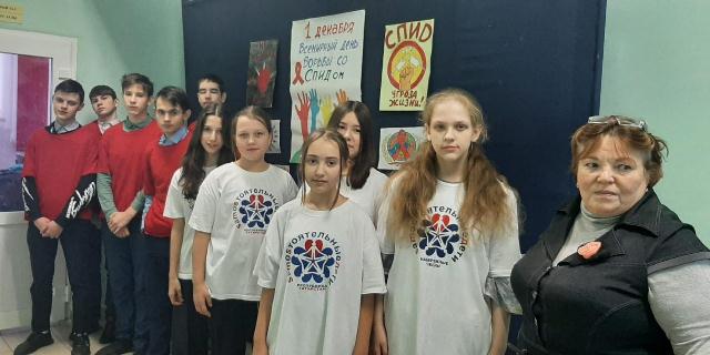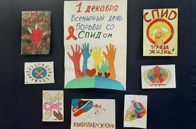 Сегодня 1 декабря 2022 года, SamoSтоятельные Дети отряд "Позитив" проинформировал параллель 8-х и 9-х классов в профилактической беседе о существование борьбы всего человечества со страшной болезнью СПИД. В игровой форме была проведена викторина "Правда или не правда?" На выставке продемонстрированы тематические плакаты и рисунки. Распространили между учениками разъяснительные буклеты о СПИДе.
