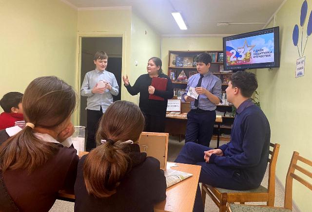 Опубликовано: 21.02.202321 февраля 2023 года ученики 7а класса посетили библиотеку–филиал №23, в рамках празднования Дня защитника Отечества, для юношеской аудитории был проведён интеллектуальный квест «Тропою воина» с целью расширения представления учащихся о Вооруженных силах России, воспитания чувства патриотизма.