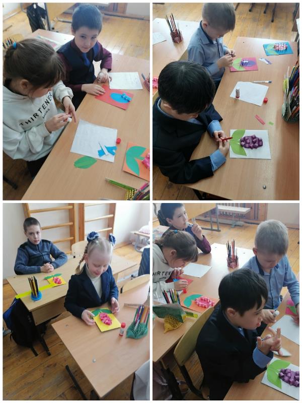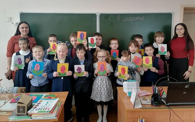 Учащиеся 3а и 3б классов под руководством студентов и педагогов Валиевой Р.Р. и Галимуллиной Ф.А. изготовили поделки для мам и бабушек к Международному женскому дню 8 Марта.