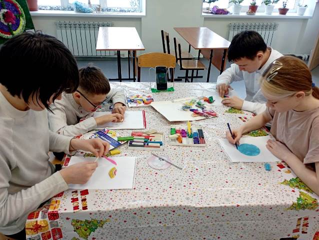 Опубликовано: 05.01.202405.01.24 с учащимися 7а класса под руководством Хамидуллиной Л. Р. был проведён мастер-класс аппликация из пластилина "Ёлочная игрушка".