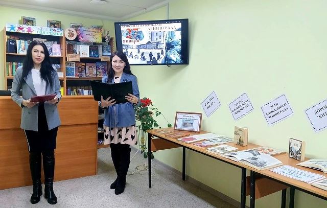 Сотрудники библиотеки рассказали ребятам о тяжелых испытаниях, выпавших на долю жителей осажденного закрытого города Ленинграда: о голоде и холоде, о детях и женщинах, работавших наравне с мужчинами на заводах, о защите и обороне Ленинграда советскими солдатами. Особенными чувствами ребята прониклись к судьбе маленькой девочки Тани Савичевой. Её дневник стал одним из символов Великой Отечественной войны. Вниманию учащихся была представлена книжная выставка «Их памяти, живущий поклонись!». Ребята познакомились с произведениями А. Чаковского «Блокада», В. Ардаматского «Ленинградская зима», Д. Гранина, О. Берггольц, из которых узнали о героизме и стойкости жителей Ленинграда, о строительстве спасительной «дороги жизни» через Ладожское озеро.
