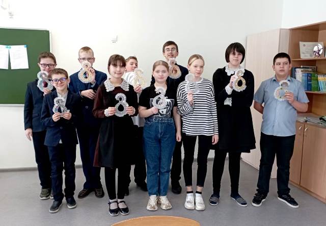 Опубликовано: 11.03.2024Учащиеся 7а класса под руководством классного руководителя Хамидуллиной Л. Р. изготовили подарки своим мамам на 8 Марта.