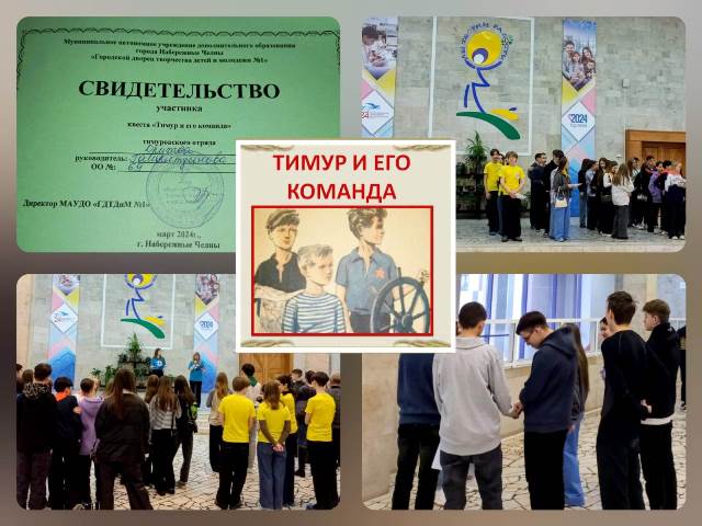 Опубликовано: 26.03.202426 марта 2024 года в МАУДО "ГДТД и М №1" Тимуровский отряд «Дружба», ученики 9Б класса приняли участие в Квесте для тимуровских отрядов «Тимур и его команда».