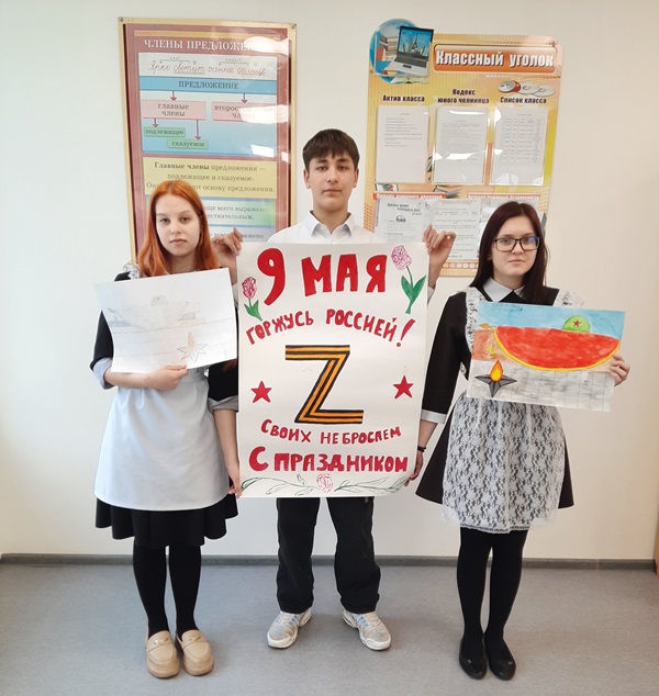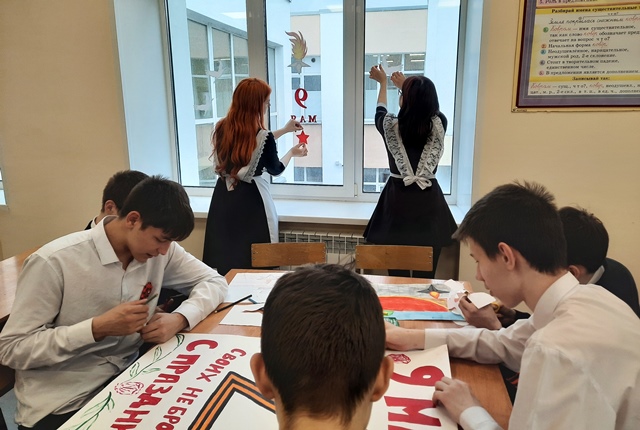 Опубликовано: 08.05.2024Согласно плану воспитательной работы с учащимися в 9а классе были проведены мероприятия ко Дню Победы. Классный руководитель Акбирова Г.Т. провела Урок мужества «День Победы». Учащиеся Мугтасимов Алмаз и Сафина Эльвина сделали стенгазету и рисунки к 9 Мая. Все ученики класса оформили окна своего кабинета в рамках Всероссийской патриотической акции "Окна Победы".