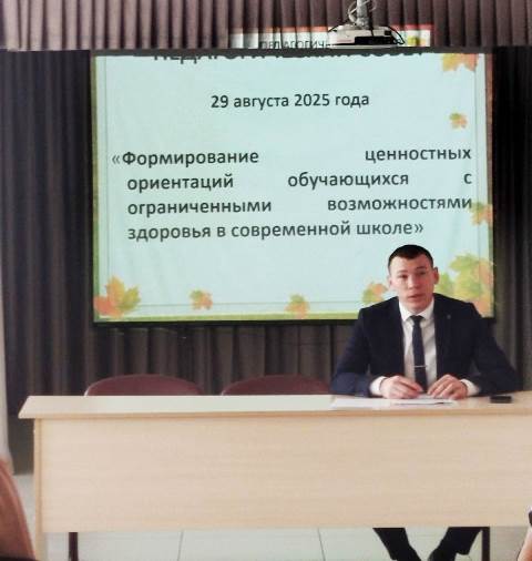 Опубликовано: 29.08.202529.08.2025 в актовом зале прошёл педагогический совет на тему "Формирование ценностных ориентаций обучающихся с ограниченными возможностями здоровья".