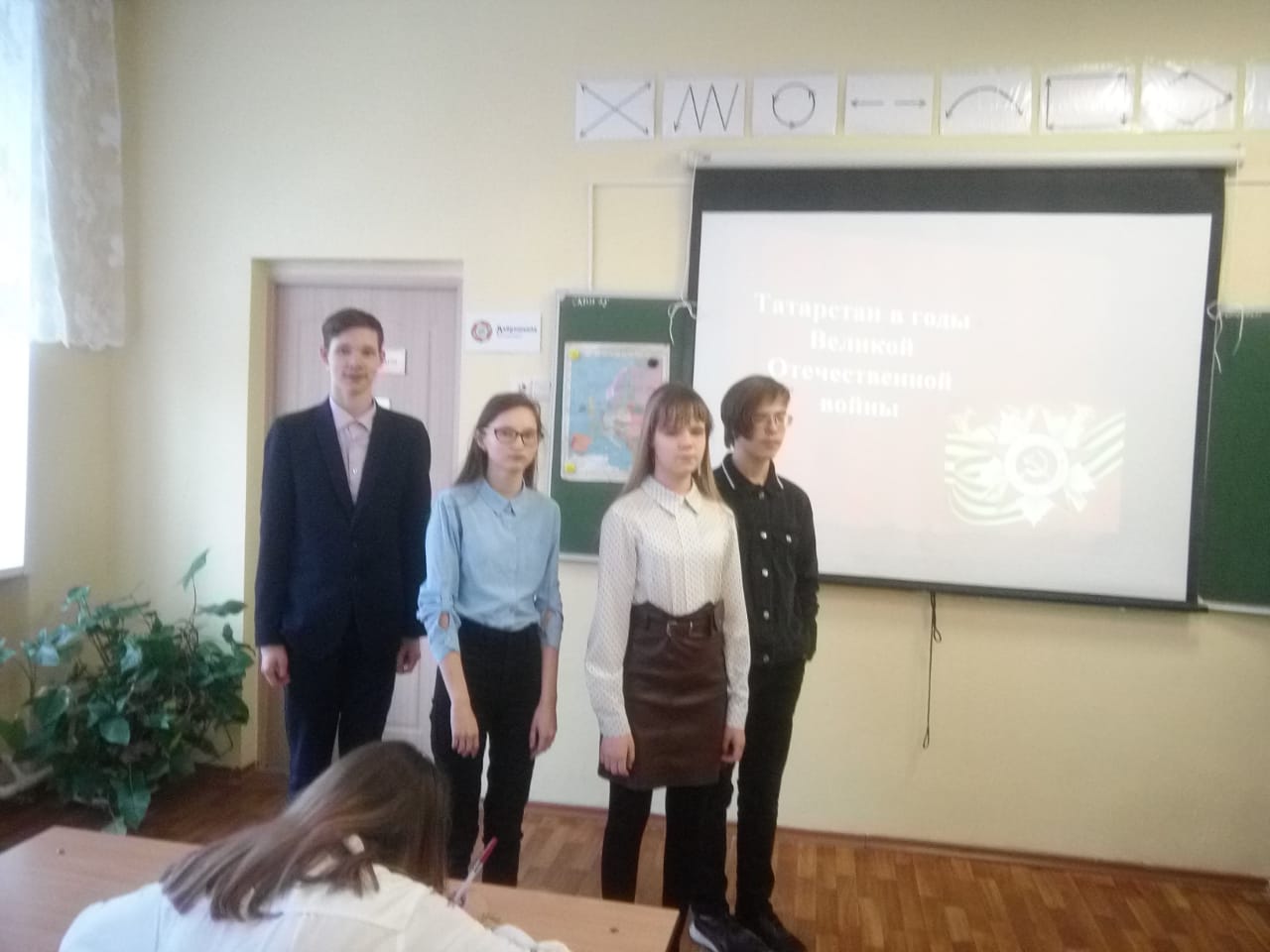 Учащиеся 5-11 классов приняли участие в републиканском квесте, посвященном 76-летию Победы в ВОВ. Учащимся были предложены различные задания: орпделение местонахождения памятника, посвященного ВОВ, складываение писем-треугольников, исполнение военных песен, знание городо - героев и др.