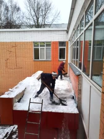 В очередной раз работники нашей школы вышли на уборку снега. На этой неделе были очищены от снега крыша нашей школы и козырьки над входами школы.