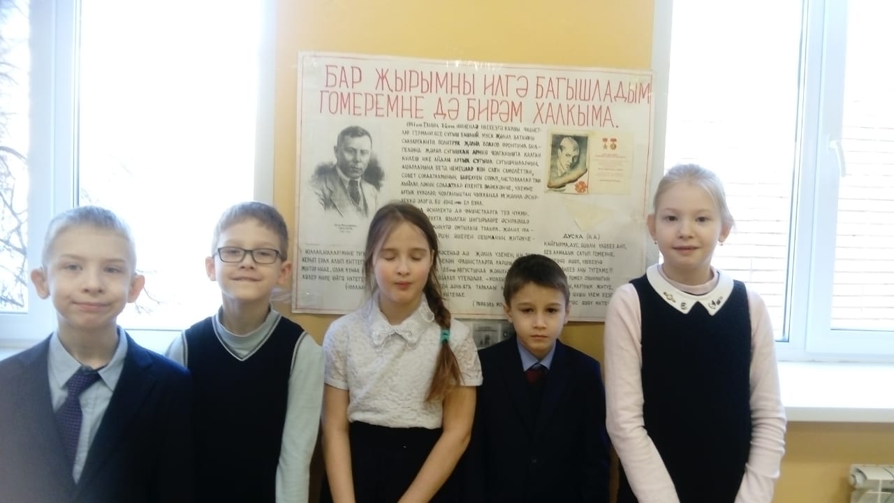В рамках военно-патриотического месячника в школе прошли уроки посвящённые юбилею Мусы Джалиля во 2 классе, 5 классе.