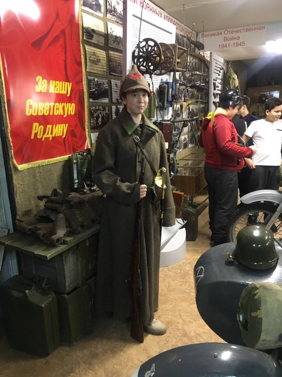 В рамках военно-патриотического месячника 5-в класс посетил музей Боевой славы ГДТДиМ №1. Также педагог Хасанова Л.С. провела классный час приуроченный к 115 летию героя - поэта Мусы Джалиля.