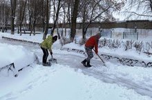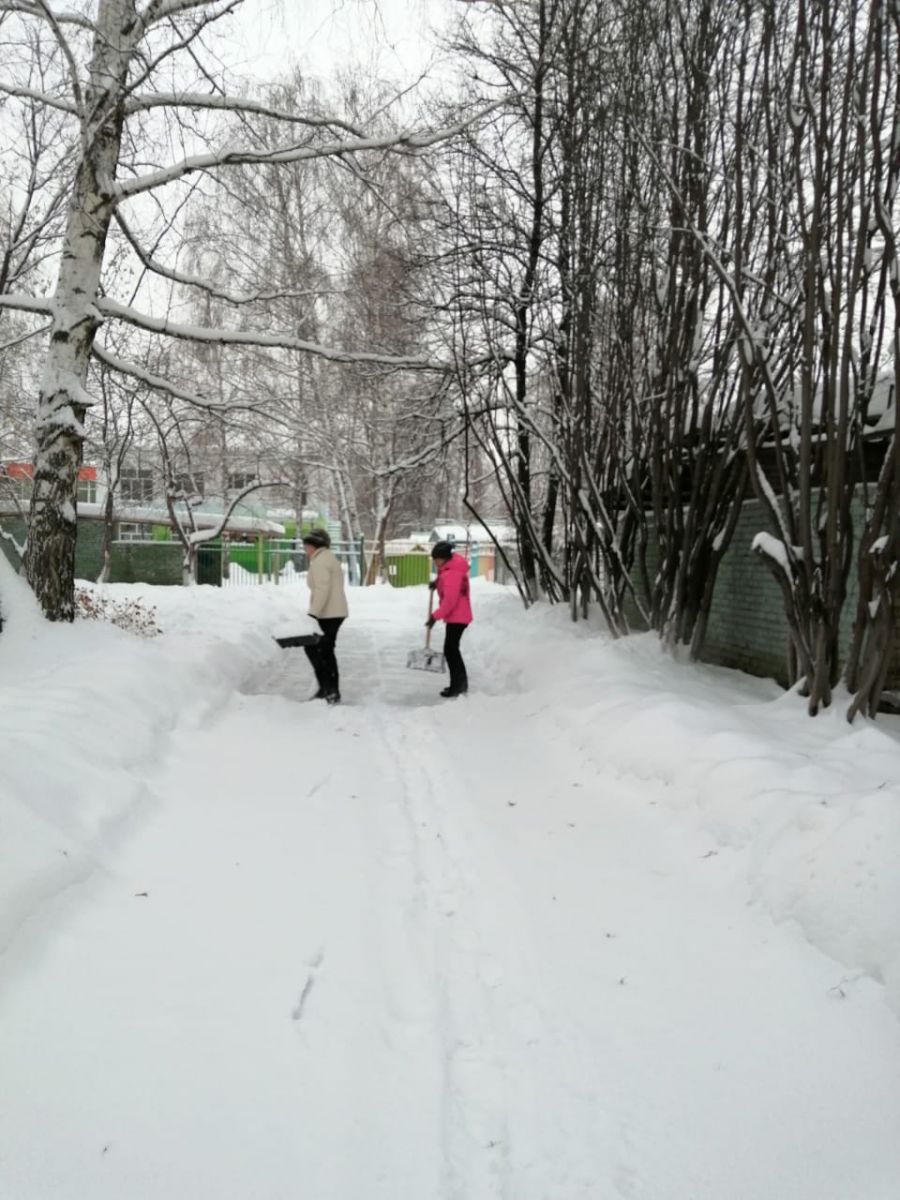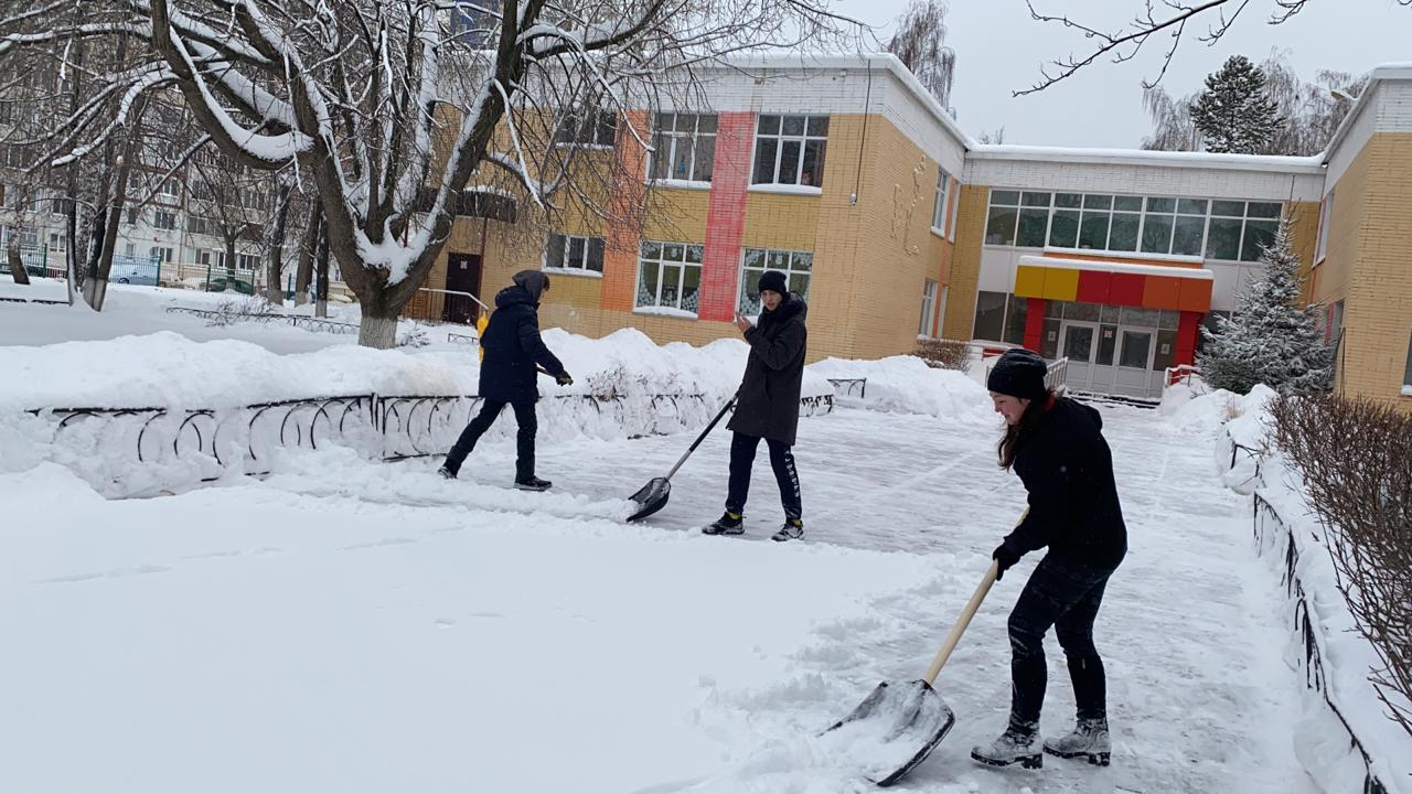 В Набережных Челнах который день идет снег. Завалило улицы, дворы. Вот и в нашей школе уже который день сотрудники выходят на уборку территории от снега. Очищают подъездные пути, тротуары, эвакуационные выходы. На помощь выходят члены семей наших учителей.