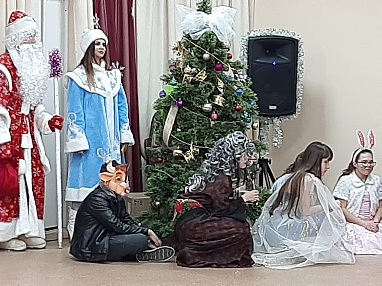 И вот он наступил - праздник новогодней елки в нашей школеУчащиеся старших классов подготовили театрализованное представление «Сказка про белого бычка!