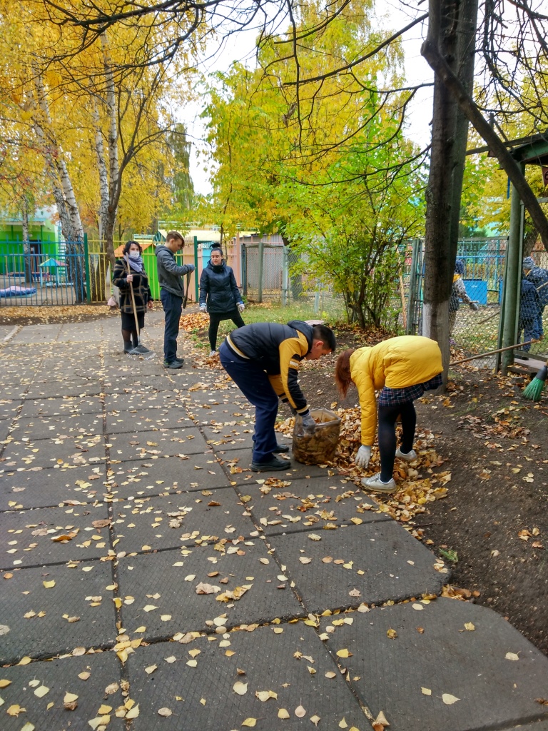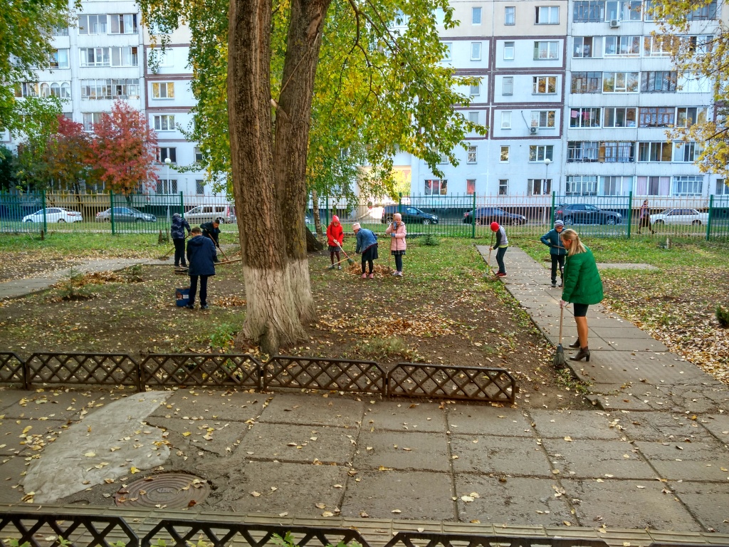 С началом октября работники школы, родители и учащиеся выходят на территорию школы и наводят порядок и чистоту.