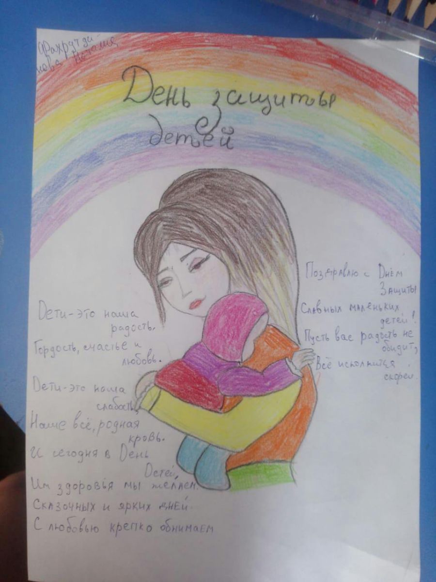 Онлайн-выставка рисунков, посвященная Международному дню защиты детей. День защиты детей - это весёлый, детский праздник. Нет в мире ничего более важного и ценного, нежели дети и детство. Все мы должны любить, беречь наших детей, защищать их права.