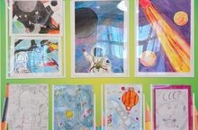Учащимися нашей школы организована выставка рисунков, посвященная Дню Космонавтики, "Мечты о Космосе"