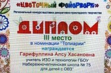 В МАУ ДО "ДЕТСКО - ЮНОШЕСКИЙ ЦЕНТР № 14" состоялся региональный конкурс декоративно - прикладного творчества "ЦВЕТОЧНЫЙ ФЕЙЕРВЕРК". Наши учашиеся и педагог Гарифуллина А.Х. представили свои творческие работы на конкурс и достойно заслужили призовые места. Сабирзянова Дарина 2 место в номинации "Сувениры" и Гарифуллина Алсу Хасановна 3 место в номинации "Топиарии". Поздравляем и желаем будущих побед!!!