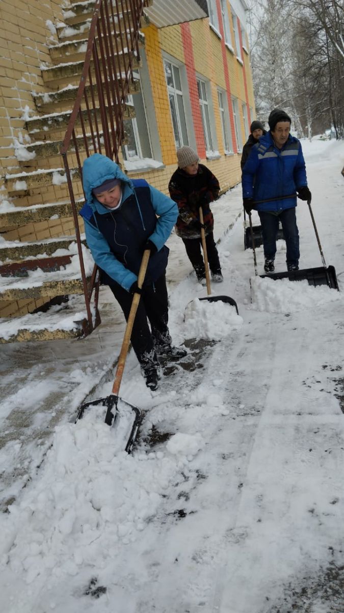 Снег, шедший все выходные, завалил тротуары, подъездные дороги к школе, территорию школы. Работники школы, родители и старшие ученики вышли дружно на уборку снега. Утром, школа была готова встретить своих учеников. Но уборка снега продолжается. ФОТО