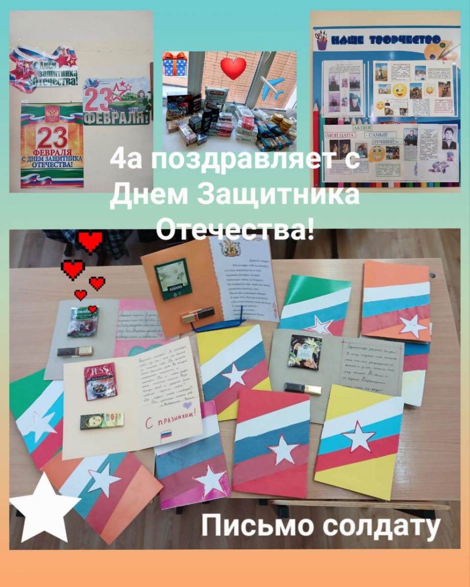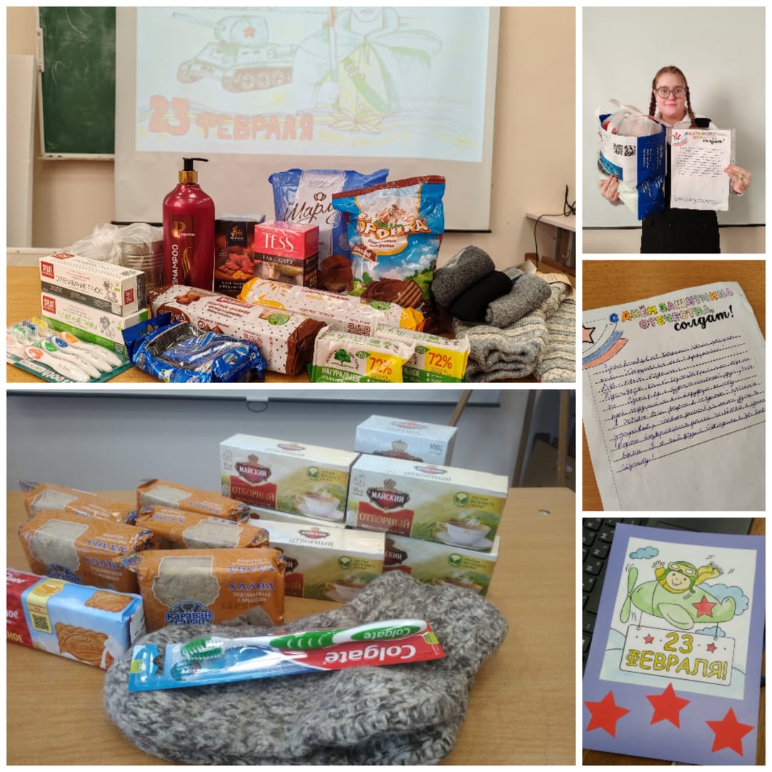 В преддверии Дня Защитника Отечества в школе прошла акция "Посылка солдату". Основная цель акции - поднятие духа и эмоциональная поддержка солдат. Учащиеся школы написали письма и сделали поздравительные открытки. Родители, дети и сотрудники школы собрали посылки с самыми необходимыми вещами. Всем участникам акции выражаем благодарность! Спасибо за неравнодушие, активную жизненную позицию и сотрудничество!