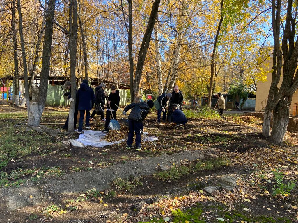 Вооружившись необходимым инвентарем, все участники приводили в порядок школьную территорию: собирали мусор, сгребали листву и траву. Общими усилиями за несколько дней вся территория преобразилось: везде чисто и красиво.