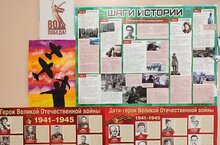 Учащиеся 5-10 классов подготовили информационный стенд, посвящённый 80-летию Победы в ВОВ, где освещены шаги истории, рассказывается о героях ВОВ, о детях -героях!