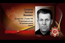 Со слов ученицы 3б класса Гильмановой Миланы "Мой прадедушка Солдатов Николай Иванович родился 20 апреля 1912 года в сельской местности.В 1941 году он ушел воевать на фронт.Ему было 29 лет.В боях был дважды ранен,лечился в госпиталях.За боевые заслуги был награжден орденами и медалями.После победы 9 мая 1945 года мой прадед воевал во второй русско-японской войне в августе -сентябре 1945 года.Прадедушка умер в возрасте 78 лет.Хотя я его не когда не видела но мама и бабушка про него много рассказывали. СПАСИБО МОЕМУ ПРАДЕДУШКЕ И ВСЕМ ВЕТЕРАНАМ ВОЙНЫ ЗА ПОБЕДУ!" -