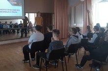 В рамках профориентации в школе состоялась встреча с выпускником Субботиным Леонидом, который обучается в КГЭУ. Он рассказывал старшеклассникам о том, как поступить и учиться в ВУЗе.