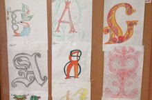 Ребята 5 А, Б классов проявили творческие способности при выполнении домашнего задание по русскому языку. Нужно было придумать и нарисовать БУКВИЦУ. Это заглавная буква каждого текста. Тема урока "АЛФАВИТ"