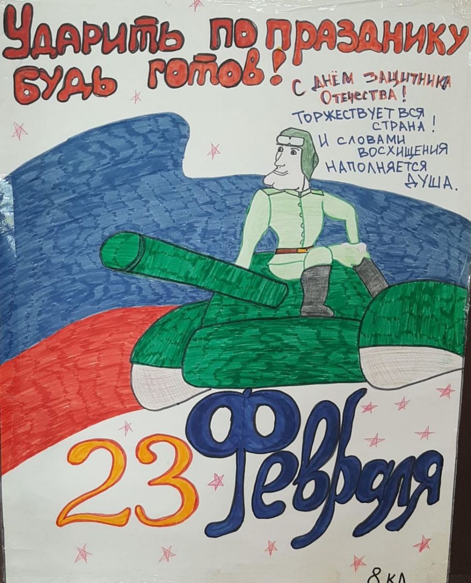 В рамках военно-патриотического месячника в школе были организованы конкурс рисунков среди 1-5 классов, конкурс плакатов среди 6-12 классов по теме "Есть такая профессия Родину защищать!"