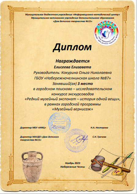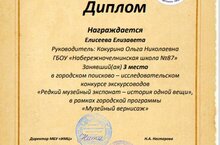 Поздравляем ученицу 2а с победой в городском конкурсе "Редкий музейный экспонат" в рамках городской программы "Музейный вернисаж". Она заняла почетное 3 место, среди образовательных учреждений города. Молодец, Лиза, так держать. Вперед к новым победам.