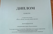 Тимуровский отряд "Руки помощи" (6-7кл.) в октябре месяце участвовал в городской акции "Пусть будет тёплой осень жизни" и получил диплом 2 степени. Поздравляем!